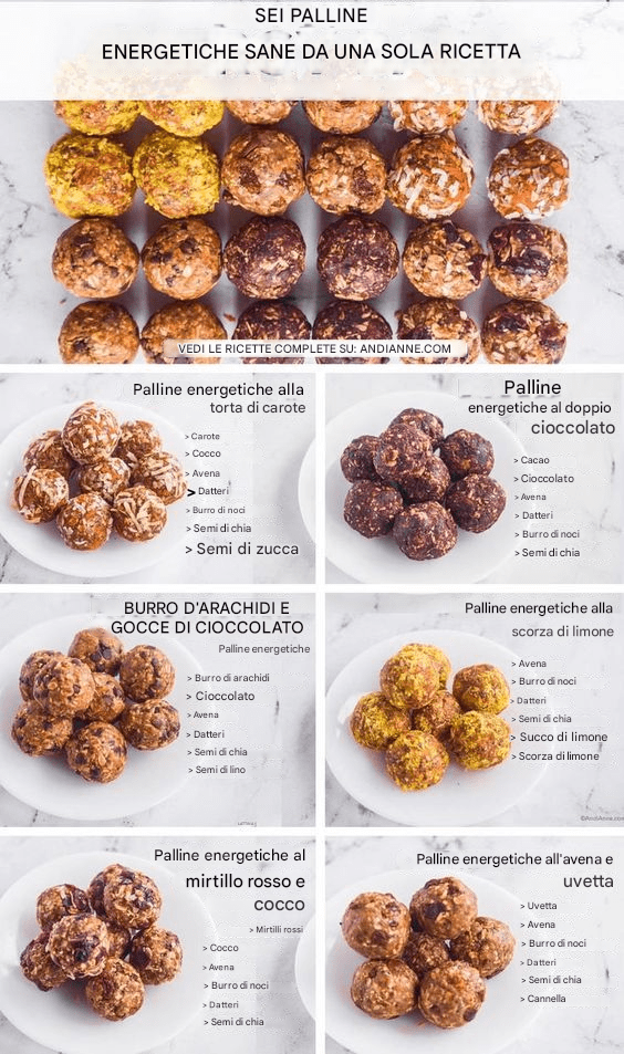Questa è la formula magica per creare le tue palline energetiche. Memorizzala e poi divertiti con i gusti!