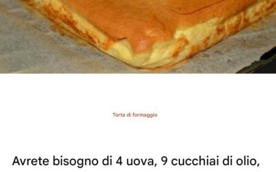 Cheesecake – Vi serviranno 4 uova, 9 cucchiai di olio, 12 cucchiai di farina, 500 g di ricotta e…