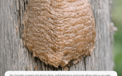 Ho trovato questa struttura dura, schiumosa e marrone attaccata a un palo della recinzione in giardino. Stavo per grattarla via, ma ho esitato. Cos'è?