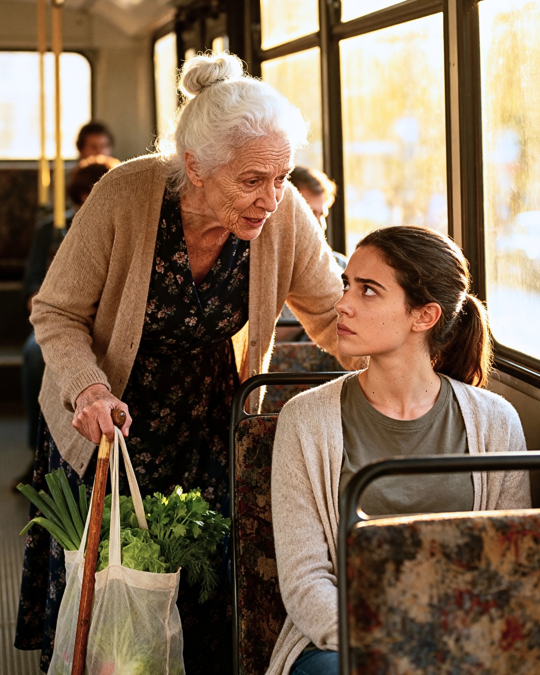 Stavo tornando a casa, stipata in un autobus affollato dopo un turno estenuante, prestando a malapena attenzione al miscuglio di rumore del traffico, conversazioni e lamentele che riempivano l'aria. Poi è salita a bordo una donna anziana, appoggiandosi pesantemente al bastone, lottando per tenere in mano due sottili sacchetti di plastica che le tagliavano le mani.