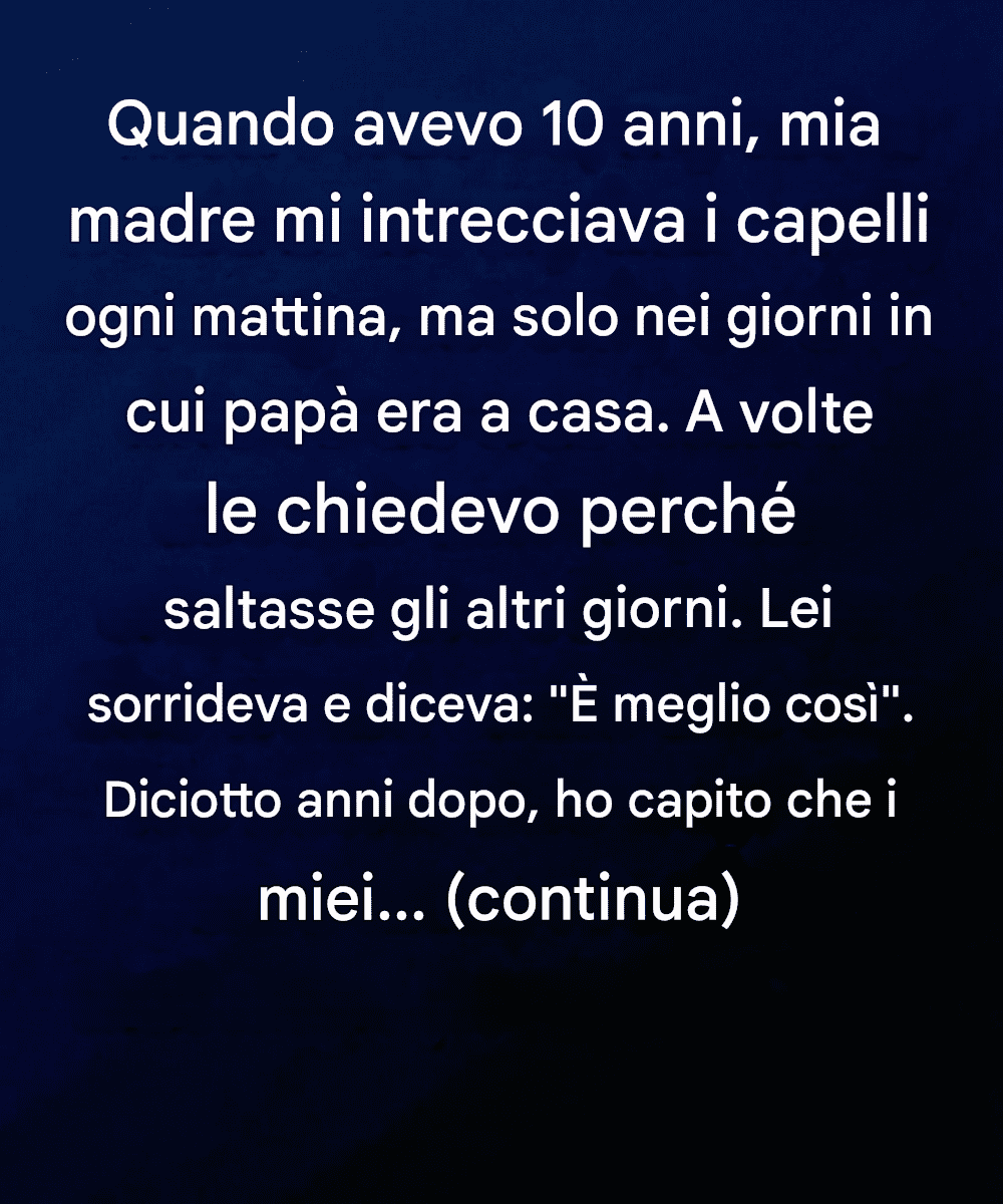 A volte mi chiedevo perché saltasse il turno le altre mattine. Quando glielo chiedevo, sorrideva dolcemente e diceva: "È più facile così". All'epoca, la accettai come una di quelle vaghe risposte da adulti su cui i bambini non discutono. Non ci pensai molto. Mi piaceva semplicemente il dolce movimento delle sue mani, il tranquillo inizio di giornata e la sensazione che la vita nella nostra piccola casa fosse esattamente come doveva essere.